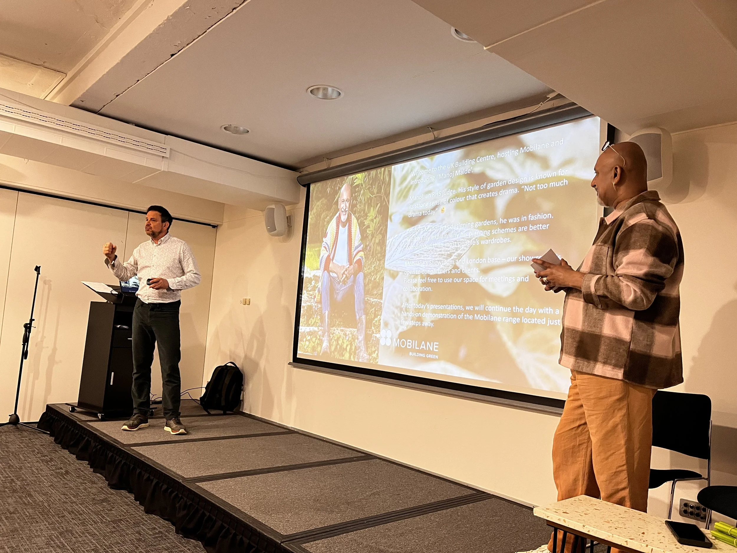 I was thrilled to be asked to attend a talk today hosted by Mobilane at The Building Centre, with award-winning garden designer, writer and TV presenter Manoj Malde who delivered a passionate and deeply personal exploration of living green walls and their role in the future of cities. Blending storytelling with research and practical design insight, Manoj made a compelling case that greenery in urban environments is a fundamental requirement for healthier, more resilient places to live.