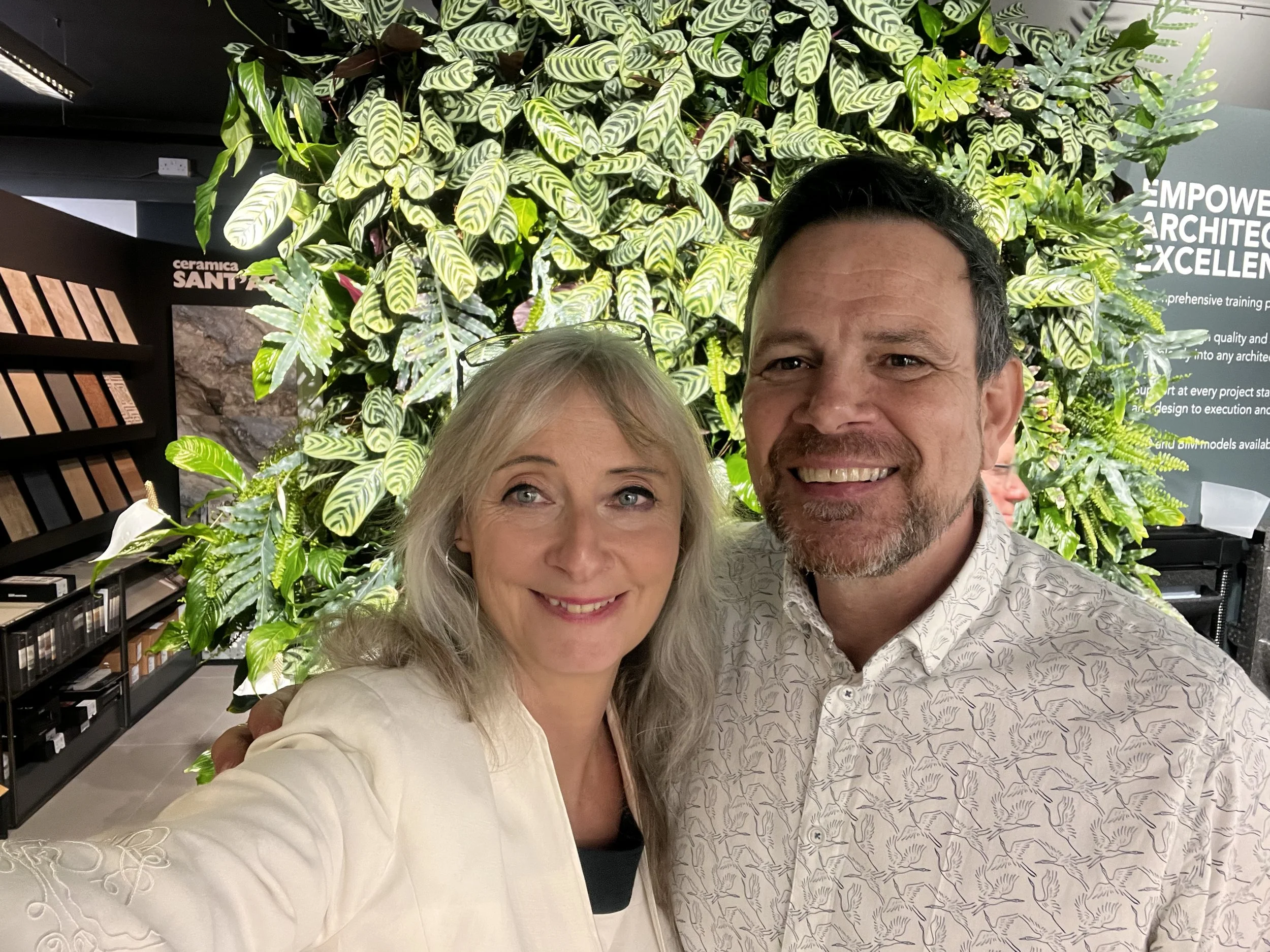 He also showed examples closer to home, of more modest interventions: rooftop installations, car parks transformed with vertical planting panels, and lush residential walls that turn blank façades into living ecosystems. Even indoors, he explained, “living pictures” composed of succulents, sedums and tropical plants can bring nature into offices, reception areas and bathrooms.